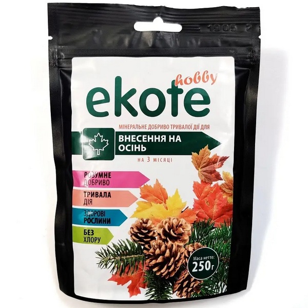 Удобрение Ekote осеннее 2-3 месяца, 250 г (Экотэ – удобрение длительного действия) рекомендовано производителем Ekompany (Нидерланды) для ухода за цветами и газонами.