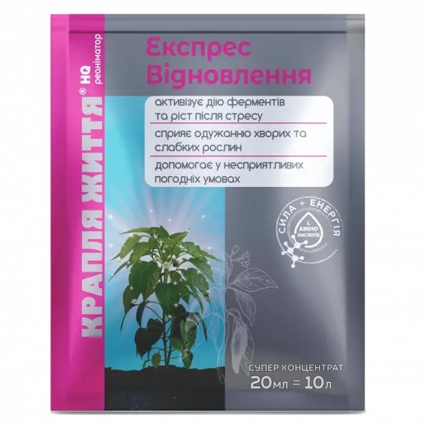 Удобрение Капля жизни Экспресс Восстановление минеральное – реаниматор растений после любых стрессов, инновационный аминокислотный комплекс для быстрого восстановления растений.