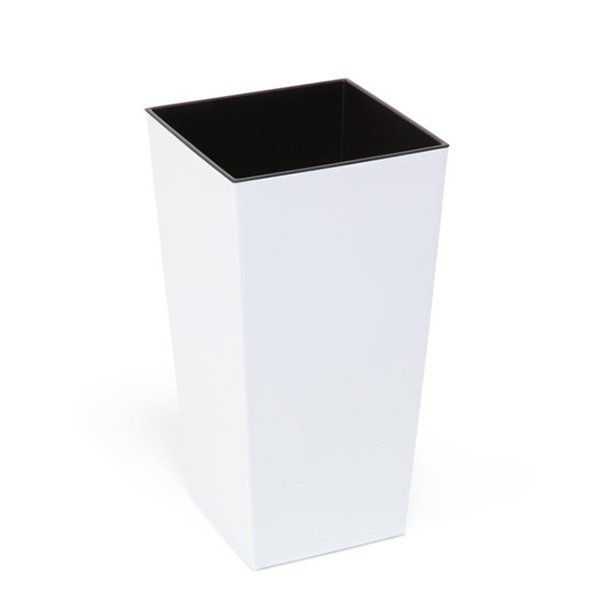 Стильное кашпо с вазоном-вкладкой, выполненное из качественного пластика в современном стиле. Такое кашпо легко моется, при долгой эксплуатации практически не теряет внешнего вида, устойчиво к различным температурным колебаниям. Благодаря удобной конструкции, позволяет наполнять землей только вазон-вкладку, являясь одновременно контейнером для стекающей воды.