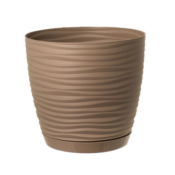 Горшок для цветов Sahara украшен волнистыми горизонтальными бороздками, напоминающими холмистые пески пустыни. Этот декоративный горшок для растений почти так же красив, как и традиционная керамика, расписанная вручную. Нейтральные, скромные цвета, которые будут гармонировать с современным интерьером, только добавляют ему очарования. Изготовлен из толстого, исключительно прочного пластика, устойчив к механическим повреждениям и воздействию солнечных лучей и мороза. Его можно использовать не только в помещении, но и на улице, не опасаясь поломки, потери цвета или качества. Поддон оснащен самоблокирующейся системой.