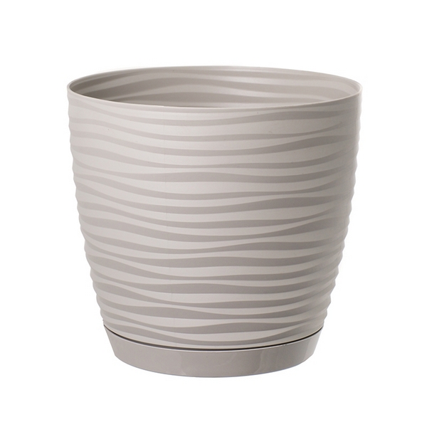 Горшок для цветов Sahara украшен волнистыми горизонтальными бороздками, напоминающими холмистые пески пустыни. Этот декоративный горшок для растений почти так же красив, как и традиционная керамика, расписанная вручную. Нейтральные, скромные цвета, которые будут гармонировать с современным интерьером, только добавляют ему очарования. Изготовлен из толстого, исключительно прочного пластика, устойчив к механическим повреждениям и воздействию солнечных лучей и мороза. Его можно использовать не только в помещении, но и на улице, не опасаясь поломки, потери цвета или качества. Поддон оснащен самоблокирующейся системой.