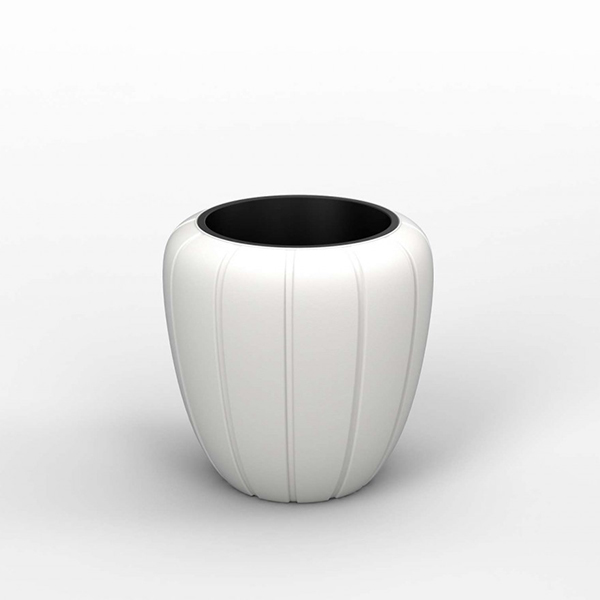 Вазон Гая средний белый пластиковый с вкладкой.Горшок имеет круглую воздушную форму. Имеется вкладка для посадки растения.Устойчив к УФ-лучам, ударопрочный.
