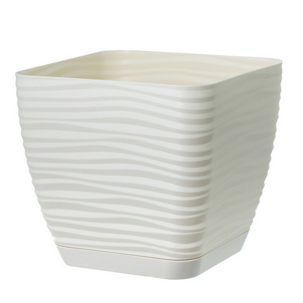 Вазон для цветов с поддоном Sahara petit Квадро - современная декоративная емкость, которая очаровывает своей формой, изяществом, цветом и подчеркивает красоту самих растений. Благодаря высокой износостойкости он может использоваться для озеленения квартир, балконов, террас, веранд и оранжерей. Квадратный корпус выполнен в различных оттенках и украшен рельефными объемными горизонтальными волнами. Горшок изготовлен из прочного пластика, который не поддается выгоранию под солнечными лучами, ему не страшна влага, что делает емкость пригодной для уличного выращивания. В комплекте с вазоном прилагается подставка, выполненная в таком же оттенке, которая защитит поверхность под горшком от воздействия влаги.