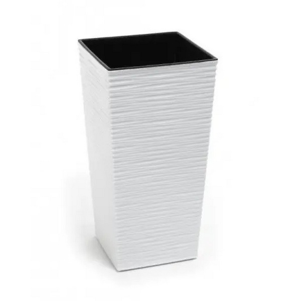 Стильное кашпо с вазоном-вкладкой, выполненное из качественного пластика в современном стиле. Такое кашпо легко моется, при долгой эксплуатации практически не теряет внешнего вида, устойчиво к различным температурным колебаниям. Благодаря удобной конструкции, позволяет наполнять землей только вазон-вкладку, являясь одновременно контейнером для стекающей воды.