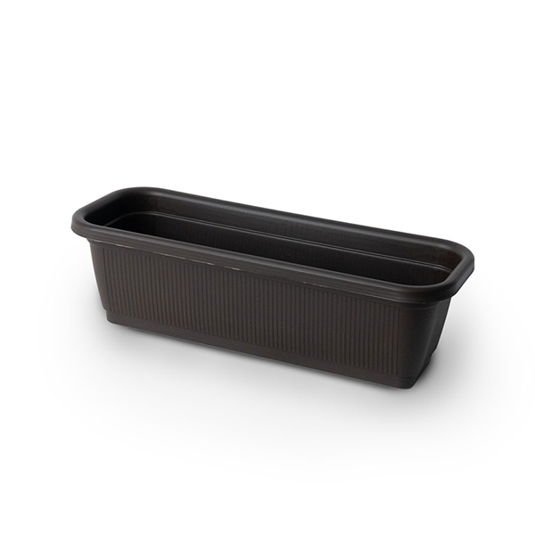 Скринька прямокутної форми, зовні має матову поверхню. Дизайн вазону стриманий, лаконічний та сучасний. Форма вазону забезпечує високу стійкість конструкції, що важливо, коли вазони використовуються для вуличних кольорів.