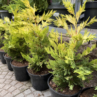 Сupressocyparis Leylandii Gold Rider - вічнозелене хвойне кеглевиде дерево із симетричною колоноподібною формою кроною. Природний міжродовий гібрид кипарисовика та кипарису. Швидкість зростання до 1 м-коду на рік. На сьогоднішній день вважається одним із найшвидше хвойних. Має декоративну цінність за рахунок кольору хвої, від бронзово-жовтої весни до жовто-зеленої літа.