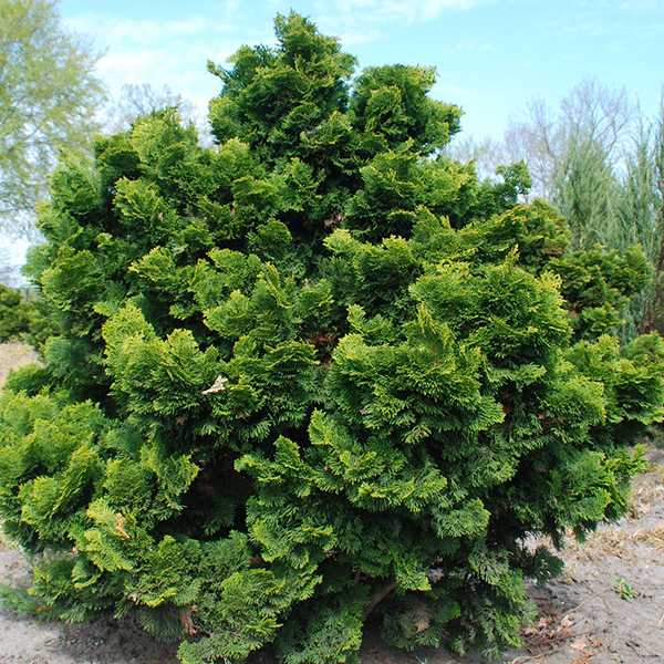 Хвоя блискуча, темно - зеленого кольору. Гілочки розподілені нерівномірно, досить густо.