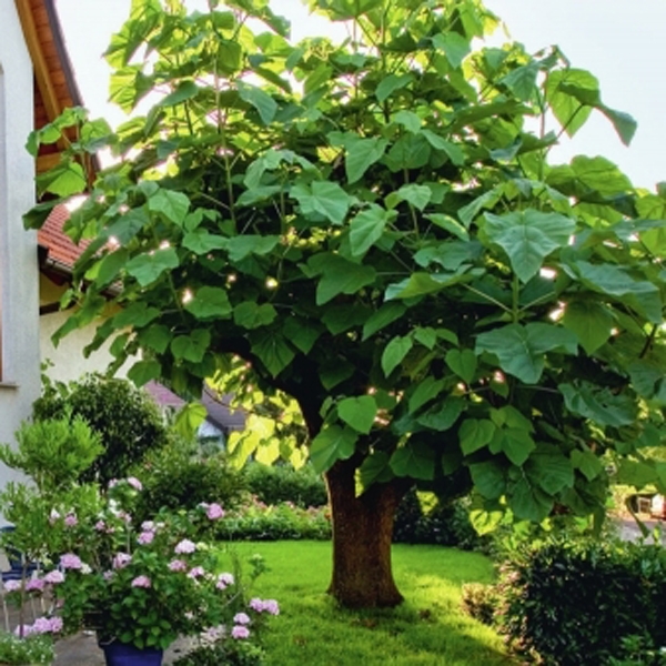 Павловнія або Адамове дерево – багаторічна високоросла (до 15 – 20 м у висоту) та швидкоросла листопадна рослина з дуже великим листям (від 20 см до 50 см) та красивими запашними суцвіттями (до 30 – 50 см завдовжки) ) з ніжно-фіолетових (іноді білих) кольорів. Темпи зростання дерева випереджають усі дерев'яні рослини, що існують у світі, і вже в 8 - 9-річному віці його деревина досягає повної зрілості. Деревина павловнії використовується при виготовленні пресованих матеріалів, стелажів, фанери, меблів та навіть музичних інструментів. Листя павловії також унікальні за своїм хімічним складом. Вони містять до 20% протеїнів (білків), за смаковими характеристиками нагадують зелень люцерни, конюшини, тому є цінним кормом у тваринництві. Можуть використовуватись і для салатів. До того ж вони здатні поглинати вдесятеро більше вуглекислого газу, ніж листя звичайних дерев. Листя: Темно-зеленого кольору, великих розмірів діаметром близько 50-70 см, бархатисті, на довгих черешках.