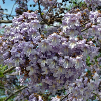 Квітки: Великі шириною до 6см, запашні, що видають ванільний, злегка мигдальний аромат, фіолетово-блакитного кольору, усередині з жовтою смужкою, чашка дзвонової форми. Квіти зібрані в суцвіття-метелик довжиною до 30 см. Ще до розпускання листя в квітні-травні.