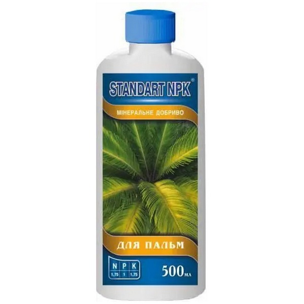 Standart NPK для пальм, юкк, драцен – добриво з оптимально підібраним складом мікро- та макроелементів, необхідних для нормальної життєдіяльності пальм, юкк, драцен. Забезпечує збалансований розвиток рослин, рясний листяний покрив та збільшує листову поверхню. Регулярніше використання добрива сприяє зміцненню імунітету до захворювань.
