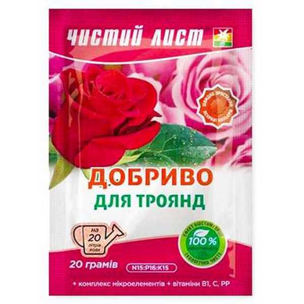 Високоефективні мінеральні добрива для троянд Чистий лист містить усі необхідні мінерали та вітаміни для ефективного харчування рослини. Засіб підвищує імунітет, якість квітів, покращує стійкість та родючість рослини, позитивно впливає на колір та форму троянд. Подбайте про вашу рослину з добривом Чистий лист і залиштеся задоволені високою якістю ваших квітів.