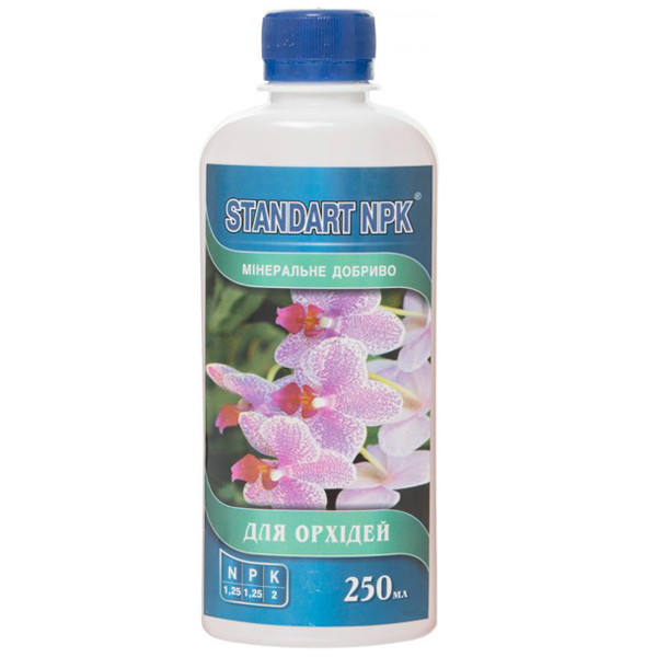Добриво мінеральне Standart NPK для орхідей - спеціально розроблене комплексне мінеральне добриво, що забезпечує максимальне проникнення необхідних поживних речовин та мікроелементів для рослин. Standart NPK для орхідей - комплексне мінеральне добриво, склад якого оптимально підібраний для здорового росту та розвитку орхідей. Збалансована формула добрива стимулює орхідею у тривалого цвітіння, накопичення у рослині поживних речовин, гарантує привабливий та естетичний вигляд орхідей. Рідка форма добрива сприяє швидкому насиченню рослин необхідними мікро- та макро елементами. Рекомендації щодо використання: Для приготування розчину використовувати відстояну воду. Підгодовувати по вологому ґрунту. Температура розчину повинна бути наближена до температури повітря. Спосіб застосування: Підживлення рослин проводиться кореневим способом (полив) або позакореневим (обприскування надземної частини рослин, крім квіток). Періодичність використання: 1 раз на тиждень. Спосіб зберігання та заходи безпеки: Добриво зберігають у неушкоджених упаковках, окремо від продуктів харчування, у сухому недоступному для дітей місці. Необхідно берегти упаковку від потрапляння прямих сонячних променів. При роботі дотримуватись правил особистої гігієни.