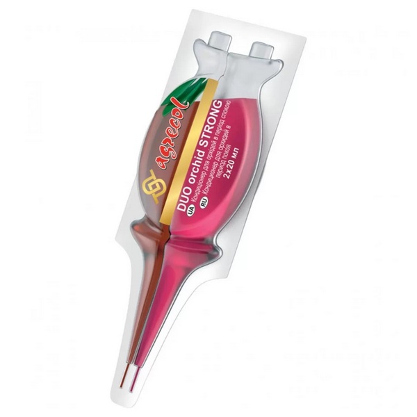 Добриво кондиціонер для орхідей подвійна сила Agrecol. Двокомпонентне добриво Duo Orchid Strong застосовується для регенерації та підживлення всіх сортів орхідей. Кондиціонер 2 в 1 – це поєднання двох формул в одному аплікаторі: одна складова є живильним підживленням, інша - регенератором субстрату і містить гумінові речовини (такі ж компоненти містяться в корі тропічних дерев).