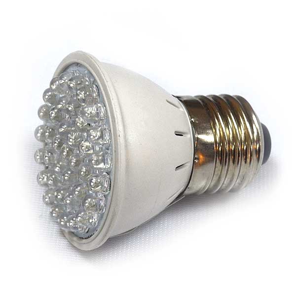 Характеристики: Потужність: 2,3W. Кількість діодів: 38 шт. (28 червоних, 10 синіх). Цоколь: стандартний – Е27. Кут освітлення: 90/120°. Спектр: 2 спектри (синій/червоний). Розміри: діаметр - 5 см., Довжина - 6 см.