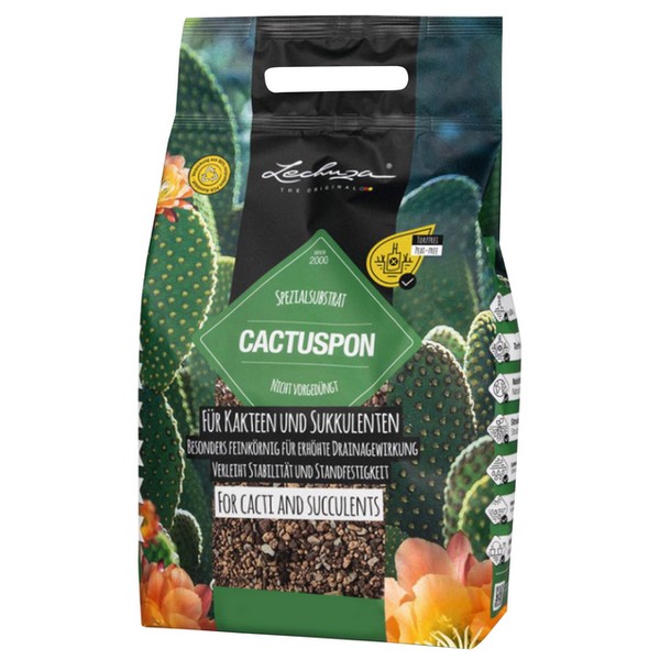 Спеціальний субстрат Lechuza CACTUSPON має унікальну властивість накопичувати воду і передавати її рослинам за потреби. Це особливо важлива характеристика суміші, призначеної для рослин із посушливих регіонів. Субстрат не містить добрива, має низький вміст поживних речовин і тому підходить для всіх видів кактусів та сукулентів.