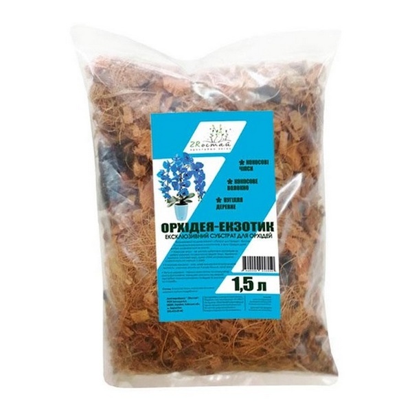 Унікальний субстрат для вирощування орхідей Екзотик 1,5 л тм ZRстай - виготовлений на основі екзотичних компонентів - кокосового волокна, кокосових чіпсів та деревного вугілля.
