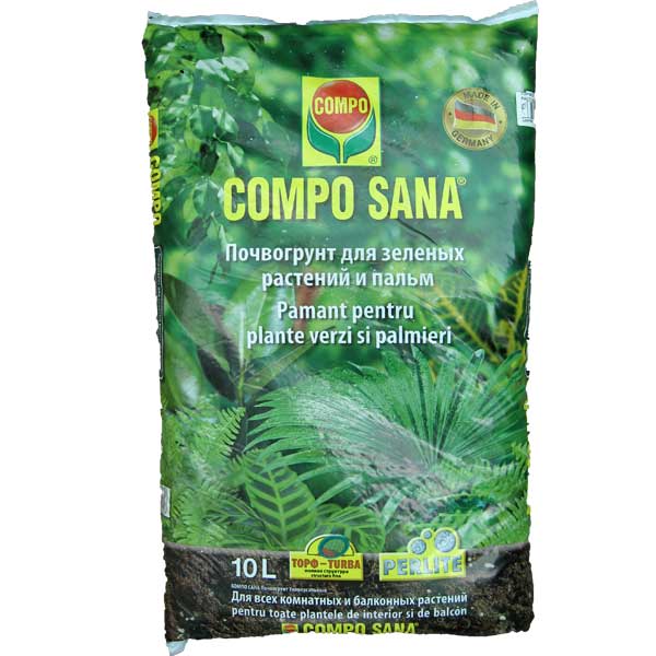 Торфосуміш підходить для різних видів зелених рослин та пальм. Вона включає спеціальний біологічний стимулятор кореневого росту Agrosil, а також каміння вулканічної породи Perlit, що гарантує відмінну аерацію коренів. Містить повільно розчинні добрива, які дозволяють розвиватися рослині без підживлення 12 тижнів. Об'єм: 10 л. Виробник: Німеччина.