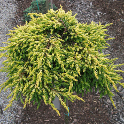 Форма: сучасний грунтопокривний ялівець, що стелиться, з дивовижно красивим, яскраво - золотистим кольором хвої.