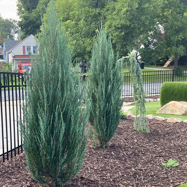 Ялівець Блю Ерроу (Блю Арроу, Blue Arrow) - блакитний скельний хвойний чагарник. Його висота дозволяє використовувати рослину як ефектну живоплоту та оригінальних зелених скульптур. Можливе насадження великої кількості саджанців на близькій відстані. Форма: Колонновидна, стовбур прямий. Гілки ростуть симетрично, спрямовані нагору.