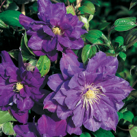 Загальна характеристика: Ліана, середньо- або швидкозростаюча, без обрізки основна маса гілок і квіток знаходиться у верхній третині рослини. Цвітіння настає залежно від сорту – з травня до вересня, спостерігається повторне цвітіння. Квітки великі, 6-8 пелюсток, інтенсивні забарвлення. Листя перисті, темно – зелені. Коренева система чутлива до високих температур, коренева шийка повинна бути в тіні. Для оптимального розвитку необхідно забезпечити коріння клематис постійним відтінком. Тому слід під час посадки, по можливості подбає про наявність низьких, вічнозелених чагарників. Вимоги: Сонце, півтінь. Віддає перевагу добре дренованим, родючим, свіжим або вологі, підкисленим або лужним. Рекомендується раз на 3-4 роки підрізування - оновлення куща. Удобрювати всесезонно комплексними добривами для квітучих чагарників за схемою. Використання: Витка рослина з чудовими квітками. Рекомендується для посадки поруч із огорожею, альтанками та іншими опорами.
