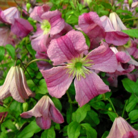 Загальна характеристика: Ліана, середньо- або швидкозростаюча, без обрізки основна маса гілок і квіток знаходиться у верхній третині рослини. Цвітіння настає залежно від сорту – з травня до вересня, спостерігається повторне цвітіння. Квітки великі, 6-8 пелюсток, інтенсивні забарвлення. Листя перисті, темно – зелені. Коренева система чутлива до високих температур, коренева шийка повинна бути в тіні. Для оптимального розвитку необхідно забезпечити коріння клематис постійним відтінком. Тому слід під час посадки, по можливості подбає про наявність низьких, вічнозелених чагарників. Вимоги: Сонце, півтінь. Віддає перевагу добре дреновані, родючі, свіжі або вологі, підкислені або лужні, супіски або суглинки. Рекомендується раз на 3-4 роки підрізування - оновлення куща. Удобрювати всесезонно комплексними добривами для квітучих чагарників за схемою. Використання: Витка рослина з чудовими квітками. Рекомендується для посадки поруч із огорожею, альтанками та іншими опорами.