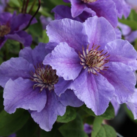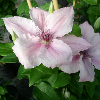 Загальна характеристика: Ліана, середньо- або швидкозростаюча, без обрізки основна маса гілок і квіток знаходиться у верхній третині рослини. Цвітіння настає залежно від сорту – з травня до вересня, спостерігається повторне цвітіння. Квітки великі, 6-8 пелюсток, інтенсивні забарвлення. Листя перисті, темно – зелені. Коренева система чутлива до високих температур, коренева шийка повинна бути в тіні. Для оптимального розвитку необхідно забезпечити коріння клематис постійним відтінком. Тому слід під час посадки, по можливості подбає про наявність низьких, вічнозелених чагарників. Вимоги: Сонце, півтінь. Віддає перевагу добре дреновані, родючі, свіжі або вологі, підкислені або лужні, супіски або суглинки. Рекомендується раз на 3-4 роки підрізування - оновлення куща. Удобрювати всесезонно комплексними добривами для квітучих чагарників за схемою. Використання: Витка рослина з чудовими квітками. Рекомендується для посадки поруч із огорожею, альтанками та іншими опорами.