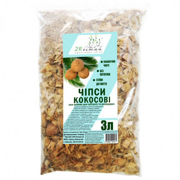Кокосові чіпси рівномірно розподіляють вологу, дозволяють повітря циркулювати всередині субстрату, завдяки чому практично неможливо залити рослини.
