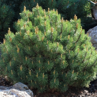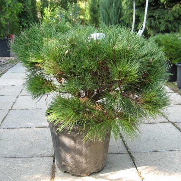 Карликовий сорт сосни з правильною щільною кулястою кроною. Росте повільно. Після 10 років досягає 0,5 м-коду висоти. Цей сорт часто прищеплюють на штамбі. Хвоя темно-зелена, блискуча або матова, в пучку по дві, загострена, тверда, пряма або дещо зігнута, нерідко скручена. Довжина хвої близько 8-14 см. Шишки розміром 8х3 см на коротких черешках розташовані на гілках горизонтально. Шишки жовто-коричневі, блискучі розкриваються на третій рік.
