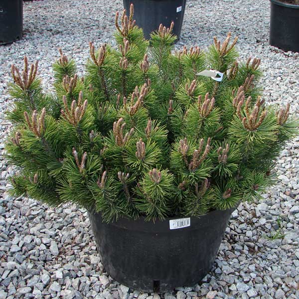Сосна гірська Мугус - вічнозелене, хвойне кулясте дерево. Пагони розкинуті низько над землею, що стелиться. Форма крони: Широкояйцевидна. Повільно зростаюча. У 30 років досягає висоти 1 м, при діаметрі крони 2 м. Щорічний приріст 15 см заввишки і 10 см завширшки. Хвоя: Хвоя голчаста, жорстка, гостра, темно-зелена, довжиною 5-8 см, розташована в пучках по 5 штук. Плоди: Шишки яйцеподібні довжиною 6-8 см, шириною 5 см, молоді-фіолетового кольору, зрілі-коричневого, насіння їстівне. Місцерозташування та грунт: Світлолюбна, виносить невелике затінення. До ґрунтів невибаглива. Росте на всіх видах ґрунтів: вологих, помірно сухих, сухих і навіть на бідних ґрунтах із низьким вмістом поживних речовин. Але погано переносить ущільнення та засолення. Добре переносить спеку та підвищену вологість. Морозостійка та вітростійка. Використання: Рекомендується для альпінаріїв, озеленення схилів, ярів. Ефектна як у групових, так і в одиночних посадках.