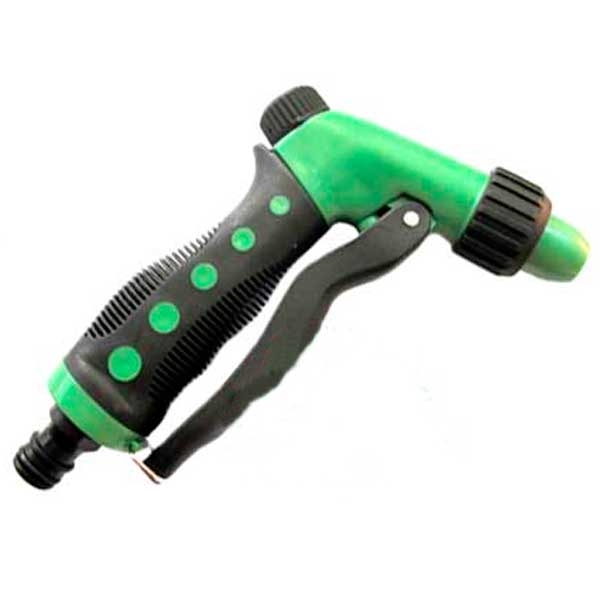 Пістолет поливальний пластмасовий з 3-ма функціями розпилення води: конусний, вузький, туман. • Легкий комфортний важіль. • Ручка керування потоком води. • Ергономічна ручка з м'яким покриттям.