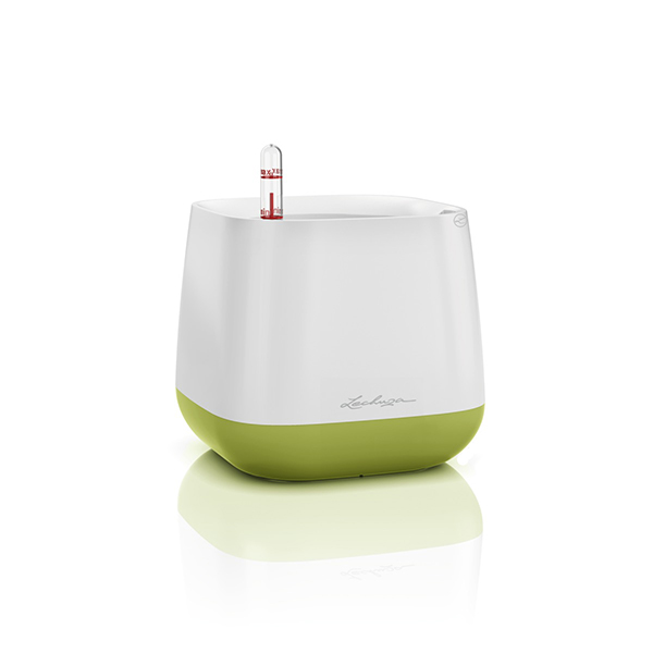 У комплект Lechuza Yula входять: кашпо (біле з фісташковим) із якісного міцного німецького пластику, внутрішній технічний горщик, індикатор рівня води та ґнот для автополиву рослин. Резервуар з водою знаходиться на дні кашпо Yula, а для поповнення запасів біля індикатора існують отвори, куди і потрібно заливати воду.