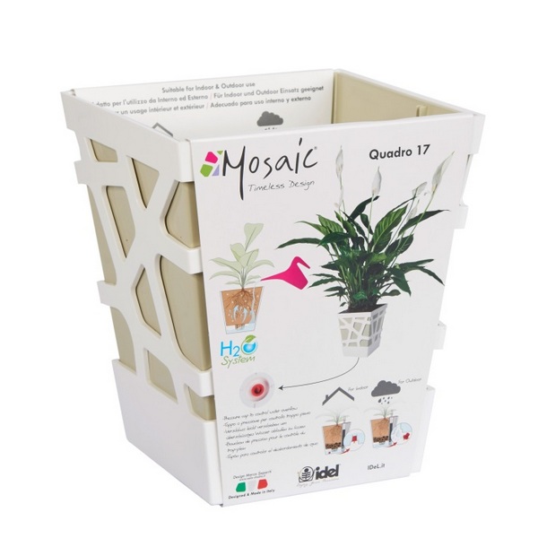 Mosaic Quadro від Idel — це сучасний горщик для рослин, виготовлений із високоякісної смоли з глянсовою поверхнею та доступний у кількох привабливих кольорах.