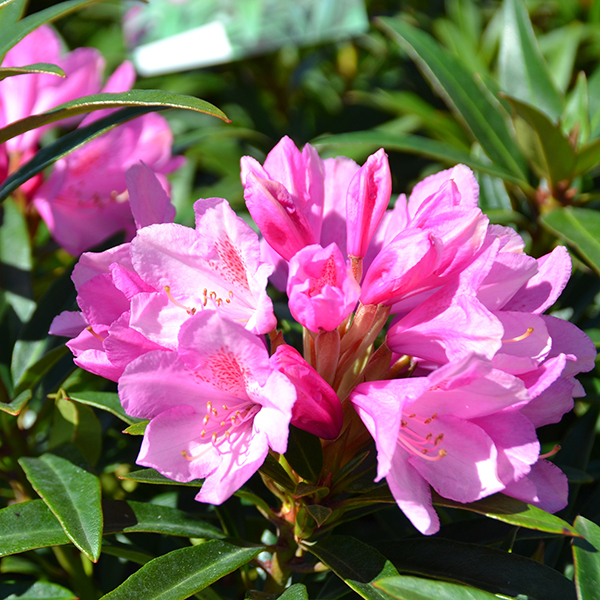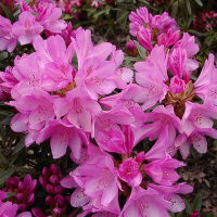 Рододендрон - вічнозелений, квітучий чагарник сімейства Верескових. Рододендрон понтійський Graziella росте завширшки і, як правило, досягає висоти 60 - 80 см і до 1,2 до 1,4 м завширшки. Листя довгасте, блискуче темно-зелене, вічнозелене. Цвітіння Цвіте із середини травня до початку червня. Квітка рожева, лійкоподібна, великі одиночні квітки, дуже численні. Особливості посадки: Оскільки ця рослина любить півтінь, їй буде дуже комфортно під кроною дерев або високих чагарників. Грунт повинен бути з помірною кислотністю або взагалі слаболужний. Садити його краще в лунку або широку ямку, оскільки коріння цієї квітки має властивість розростатися. Головне стежити, щоб коренева шийка не йшла в ґрунт, так квітка не візьметься. У грунт можна додати перегною, якщо земля суха і неродюча, якщо вона волога і свіжа досить насипати трохи піску для утворення кисневих озер. Добрива: Дорослу рослину достатньо підгодовувати раз на місяць, для цього підійде розбавлене мінеральне добрива, краще суперфосфат у легкій концентрації. Також дуже сприятливо позначаються органічні речовини, які розведені у воді, перед поливом їх обов'язково добре відстояти. Молодим кущам тих же мінеральних та органічних складів потрібно вдвічі більше. Догляд: Кущі, що добре розрослися, обов'язково потрібно підрізати, для цього, гілки діаметром до 4 см. потрібно зрізати, а місце зрізу обробити масляною фарбою, для профілактики інфекцій. Для щорічного пишного цвітіння, старі суцвіття теж потрібно видаляти, то рослина замість однієї сухої нирки дасть 2-3 нові. Морозостійкість: Висока. Добре розвинені, кущі, що обрізають, зимують без додаткової допомоги при температурі до -30 градусів, завдяки чому вистоюють навіть суворі зими. Нещодавно посаджені кущики можна накрити сосновою хвоєю чи лапником. Перед зимівлею, до перших морозів рослину потрібно рясно полити. Розмноження: Насіння потрібно висадити в глибокий контейнер і накрити плівкою, для парникового ефекту, сіянці, що підросли, краще пересадити в теплицю до наступного року. У відкритий грунт можна садити саджанці, що добре сформувалися. Висота рослини: 25 см