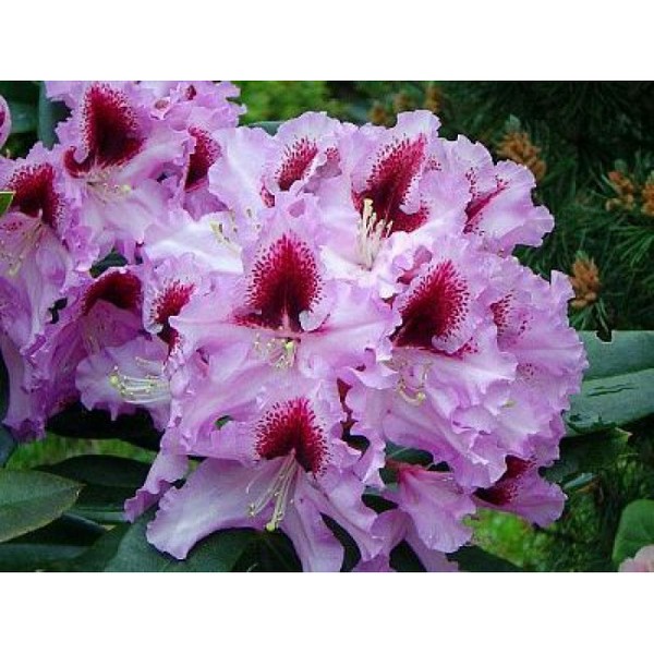 Вічнозелений кущ висотою і шириною 150 см. Квіти фіолетові з фігурними краями і інтенсивною червоно-фіолетовою плямою на верхній пелюстці. Цвітіння дуже рясне в квітні-травні. Віддає перевагу кислим, добре дренованим і зволоженим грунтам, однак не любить надмірного зволоження і заболочення. Добре росте на захищених від вітру та прямих сонячних променів, напівтінистих ділянках. Морозостійкий.