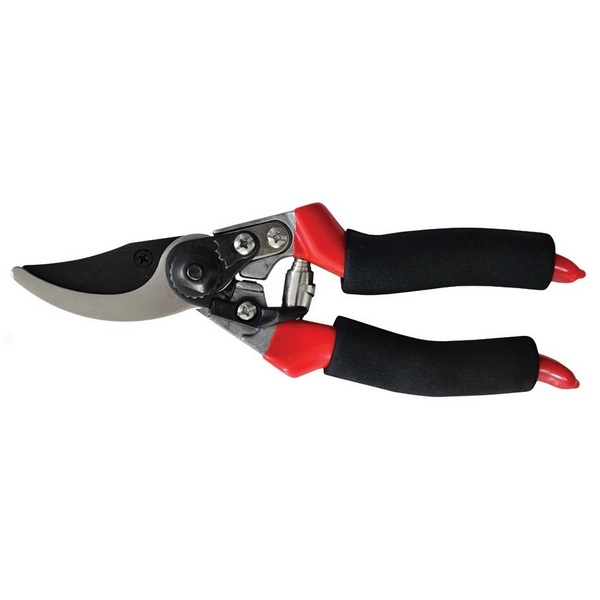 Ручний універсальний секатор довжиною 215 мм призначений для підрізання тонких живих гiлок дерев та кущiв в саду. Леза зі сталі, верхнє з чорнінням, косий зріз до 20 мм, механiзм тонкого регулювання рiжучої головки, боковий поворотний фиксатор, алюмінієва ручка з ПВХ заливкой покрита м'якими спіненими накладками для комфортної роботи. Можливо працювати правою або лівою рукою. Секатором можна розрізати гілку, залишаючи чистий зріз і забезпечуючи тим самим швидке загоєння рубця. Завдяки тонкому лезу він дозволяє обрізати гілки безпосередньо біля стовбура та у важкодоступних місцях.