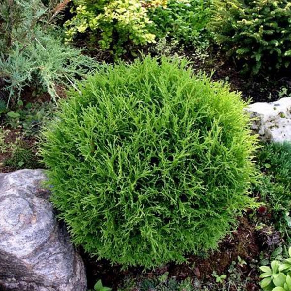Туя західна Tіні Тім (Thuja occidentalis Tiny Tim) - дуже повільно росте, карликовий вічнозелений чагарник з кулястою, тонко розгалуженою кроною. У 10 років висота рослин цієї форми 30 см, діаметр крони 40 см. Діаметр крона дорослої рослини до 1,5 м, висота 0,5-1 м.