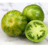 Ранньостиглий індетермінантний сорт помідорів, від сходів до збирання врожаю 75-80 днів. Кущ високорослий, понад 2 метри, вимагає підв'язки. Плоди красиві, округлі, вирівняні, щільні з ніжною шкіркою, масою до 70 г. При повному дозріванні зеленувато-жовтого кольору з глибокими вапняно-зеленими смугами. Смак екзотичний, багатий, солодкий із присмаком ківі. Сорт досить невибагливий, чуйний на підживлення, плодоносить до морозів. Не викликає алергії, відмінно підходить для дитячого та дієтичного харчування.